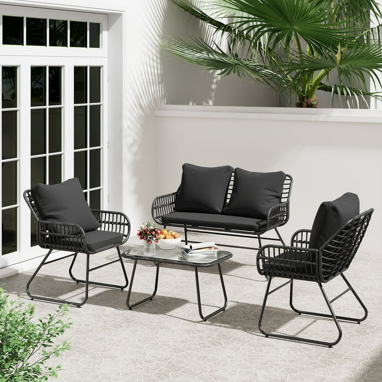 Bifanuo 4-Piece All-Weather Rattan Patio Set: Loveseat, Chairs Clearance Sale