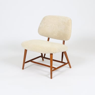 #Vintage Alf Svensson for Dux TeVe Chair in Genuine Shearling - Deal Package Curated Manual