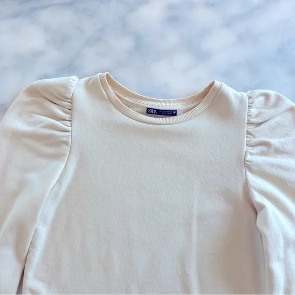 Zara Tops Zara Cream Puff Sleeve Sweatshirt Top Cream S Poshmark