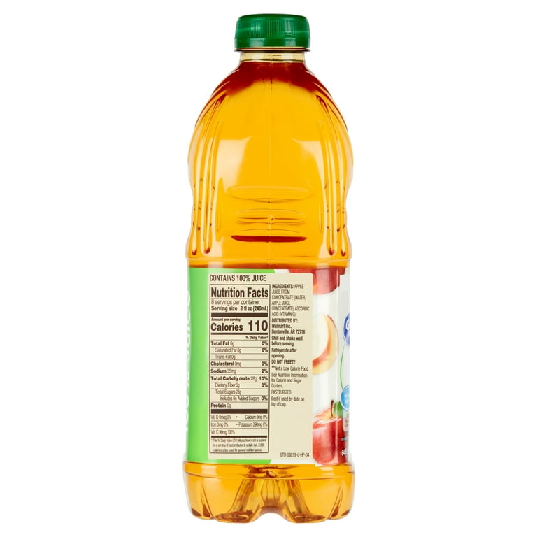 Great Value 100% Apple Juice, No Added Sugar, 64 fl oz, 110